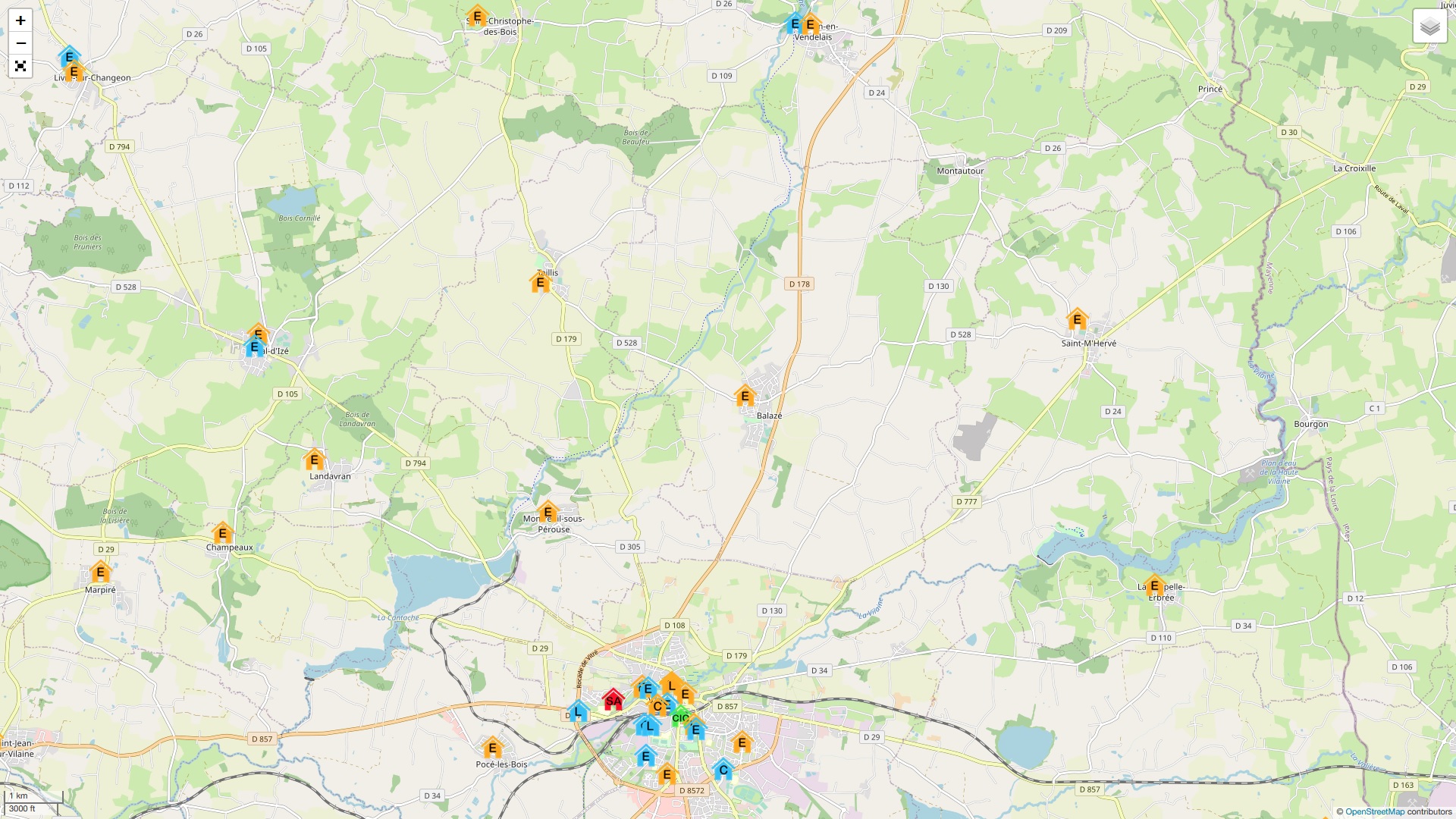 Pour les habitants des communes voisines de Vitré, dont l’immense majorité des communes n’est pas doté d’une école publique, ne se voient pas non plus proposer une alternative publique accessible facilement dans la ville centre. Au nord de Vitré, seules Châtillon-en-Vendelais et Val d’Izé respectent la loi et proposent une écoles publiques à leurs administrés. L’installation d’une école publique dans les quartiers nord de Vitré, accessible facilement depuis la rocade nord, est donc aussi une question d’accès au service public pour les familles des communes situées au nord de Vitré. (NB : Sur la carte ci-dessous, les écoles publiques sont en bleu !)